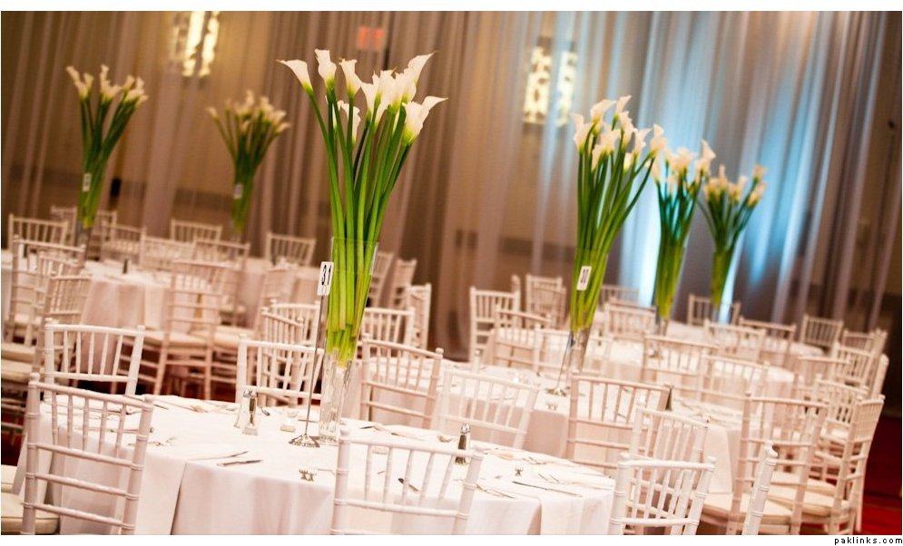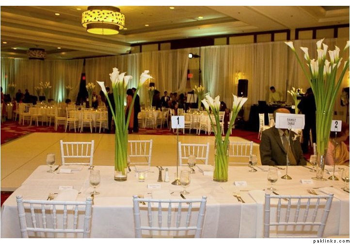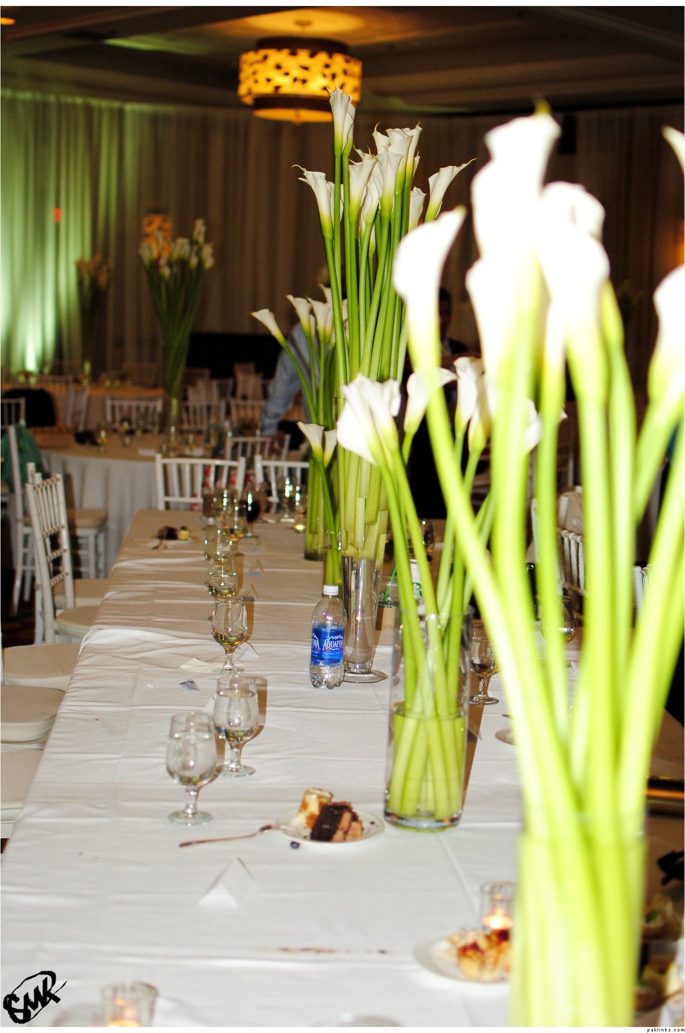 The green pop was - we had over a dozen tall calla lilies as centerpieces. On the two main family/friend tables we had alternating short & tall set up. We didn’t have any rose boutinerre for the men. We had Calla Lilly ones made for our family member men, brothers closest friends, and all the men from bride side. We then had green uplights around the room