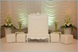 Bro said I want a Modern Sleek Look, the entire stage White. Bhabi was going to wear green. So, I basically created a white out in the hall - Entire hall was draped in white curtains, with the one behind the bride & groom in cascade fashion; the stage was white, the steps on either side were white, dance floor white, all white linens, white chivari chairs and white stage furniture. For the furniture, we kept it very simple. Didn’t want any other couch other than what the couple was to sit on. So we opted for cubes on either side of their High back two seater.
