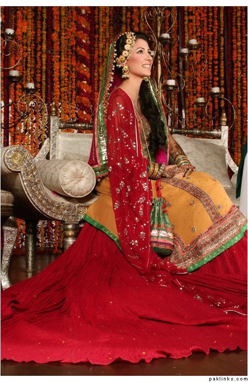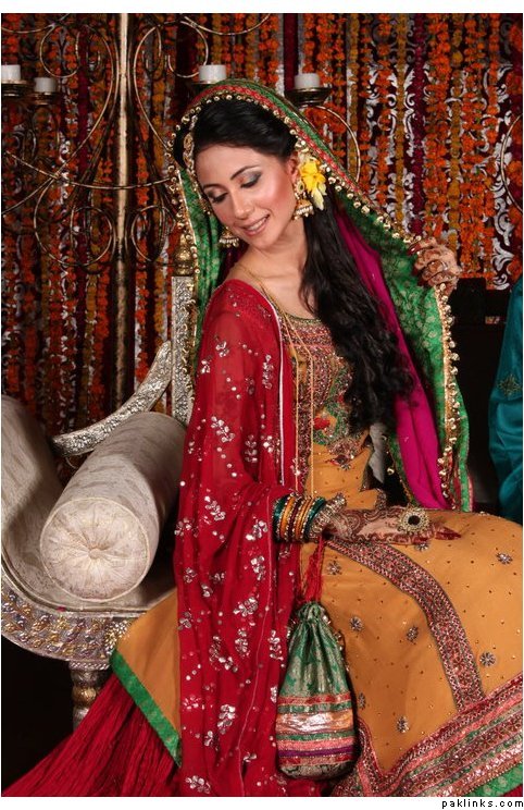 But I need to know: Where are these mehndi dresses from? I especially like the one with the red dupatta-yellow shirt.