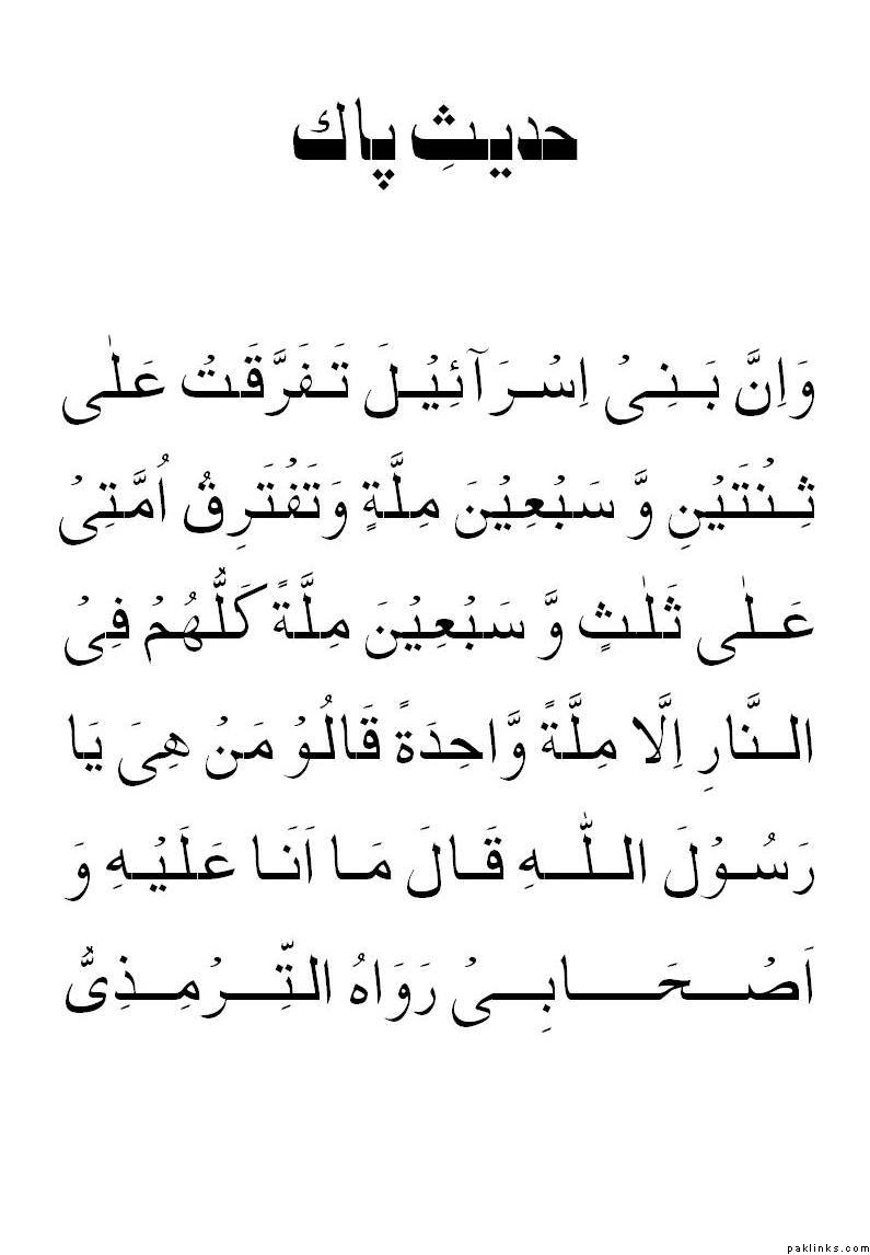 “Indeed, the people of the Book before you split-up into seventy-two sects. And this nation will split-up into seventy-three sects, seventy two are in the Fire and one is in Paradise.” And in another narration: “All of them are in the Fire except one.” It was asked: Who is that one? He replied: “That which I and my Companions are upon.” Related by at-Tirmidhî (5/62) and al-Hâkim (1/128)