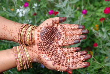Henna is a traditional art of painting the body with paste made from the leaves of the henna plant. It has been used for nearly 5,000 years as an important element of many rituals and traditions. Today, many women are using henna as part of their birth blessings, and it is also gaining popularity as a decorative art for everyone. I particularly like henna as a way to mark a celebration of any kind–it’s a fun activity to do with others and just right for children.