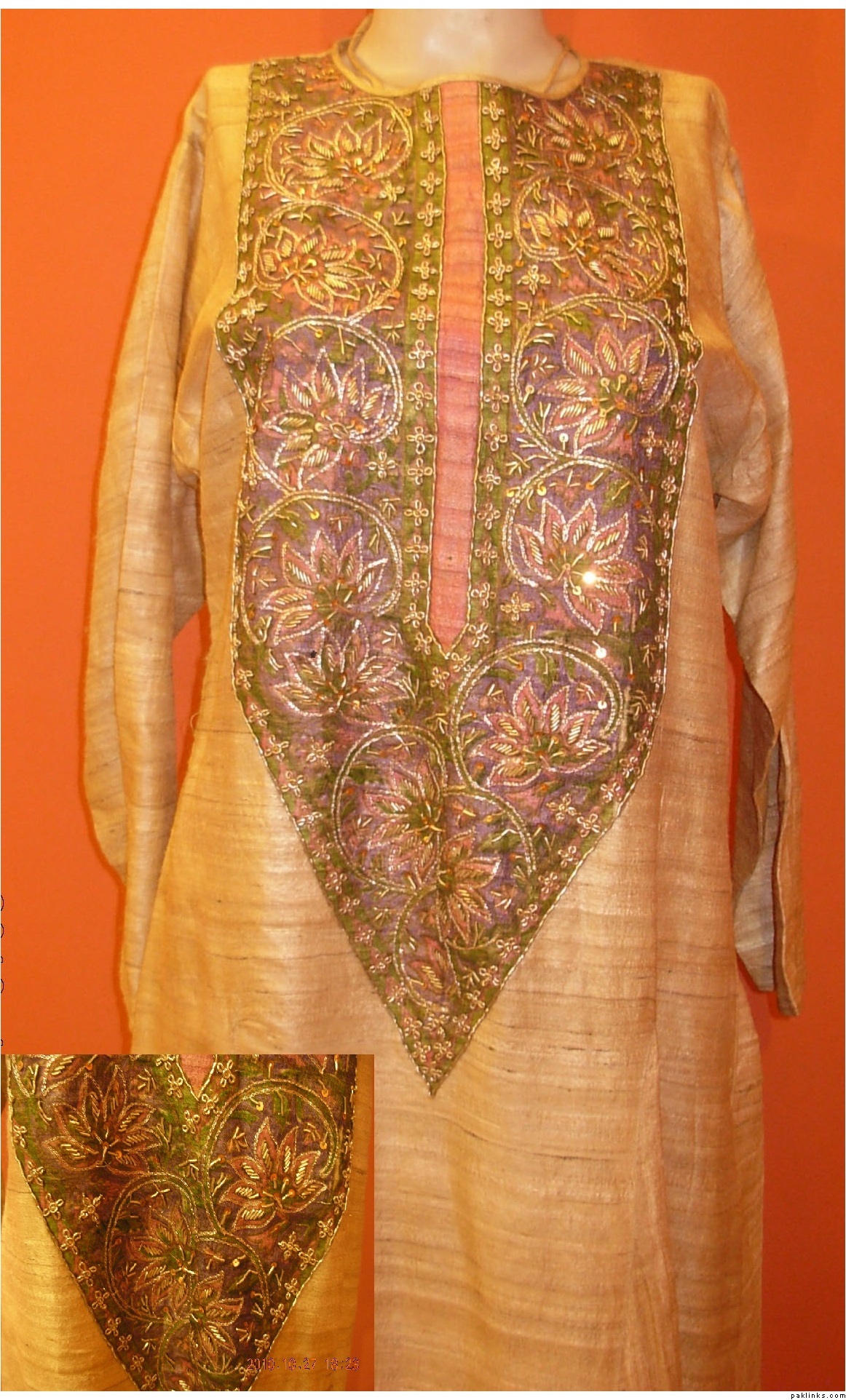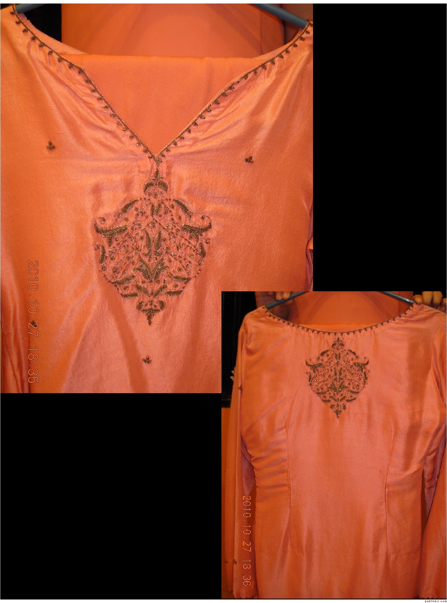 yes the first in pecha color…its in 6900Rs(PKR).because it has the work on chalks,daaman and dupatta aswell…but in this regard u may decrease the work as u want…it would be then costs low…