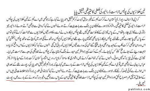 “Since the police didn’t know who they were all four were taken to a local police station where they spent nearly three hours before being bailed out by local organisers who went to the station accompanied by manager Shafiq Ahmed Paapa and coach Rashid Khan.