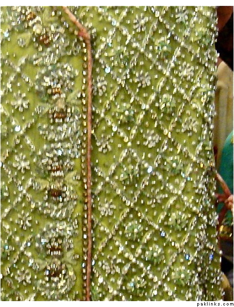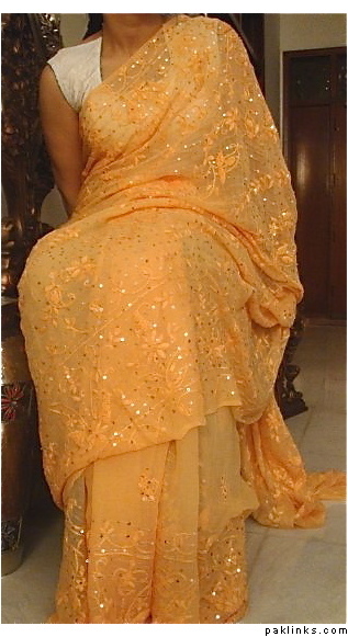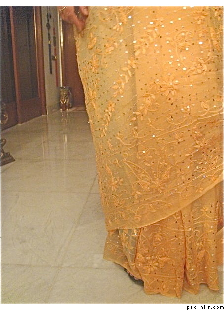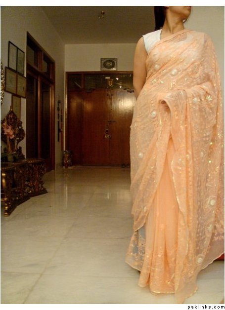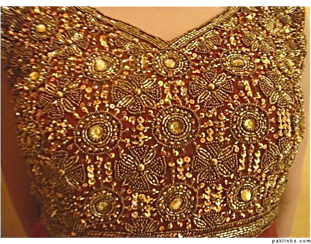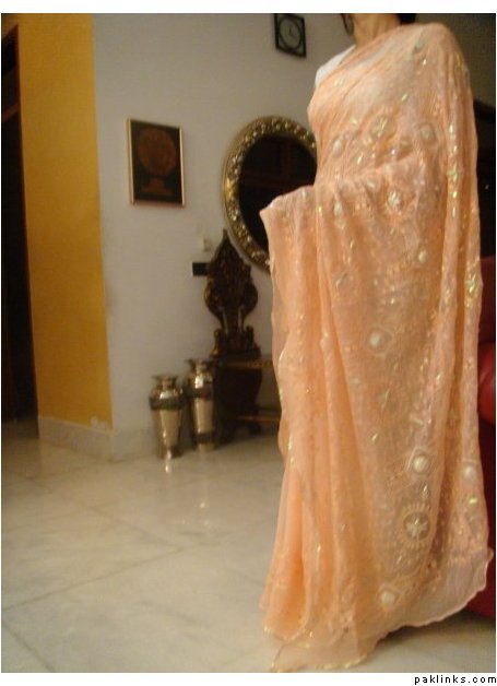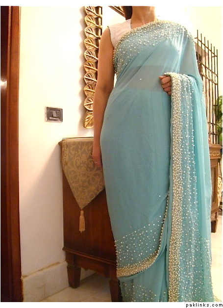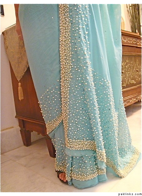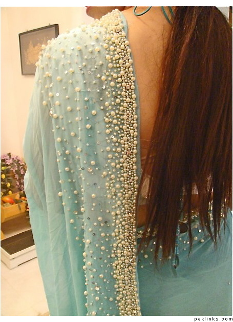 and another deep beige sari with cream pearlwork! i love this pearl kaam if you want it in any other color that can be done too