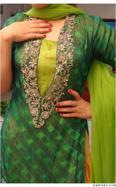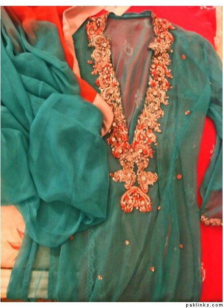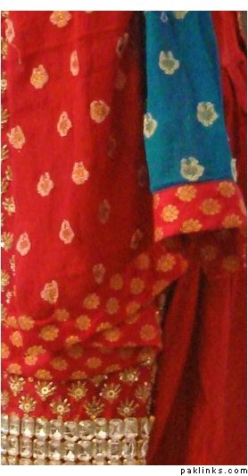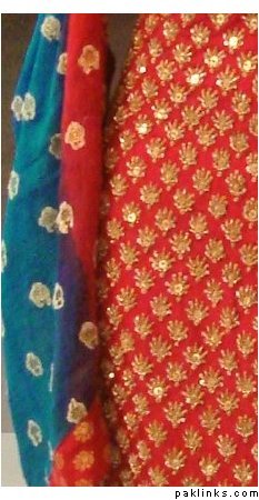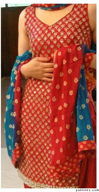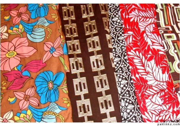 this is the kapra she has right now for long tunic tops fitted ones like theone in the photo below, she will be putting linings, making a nice neck and long laces at the bottom and sleeves done with capris and chiffon long dupattas.