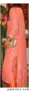 his color is really pretty and its silver and coral pink work, the dupatta is two toned aswell if you see it on the webcam youll know what im talking about