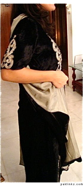 French black velvet with ari work, diamontes. Stunning Motifs and Two toned dupatta.