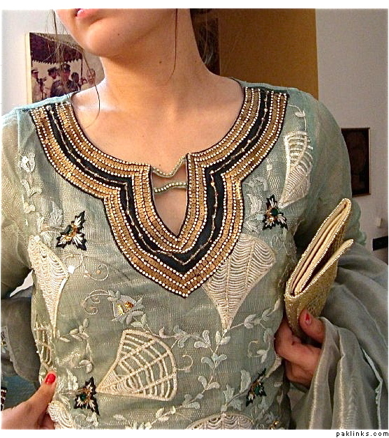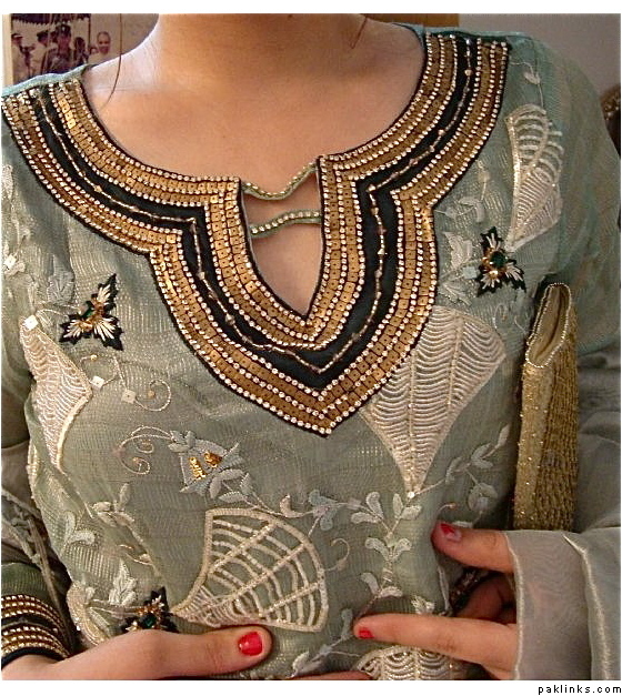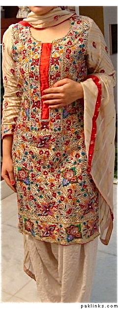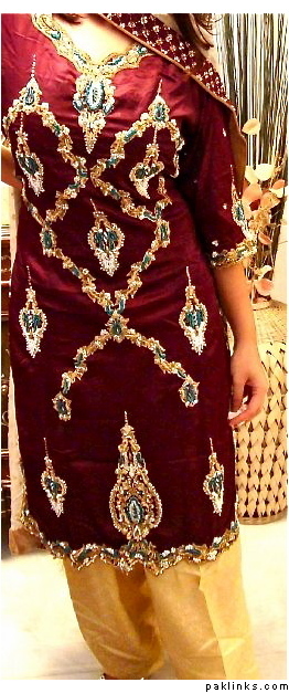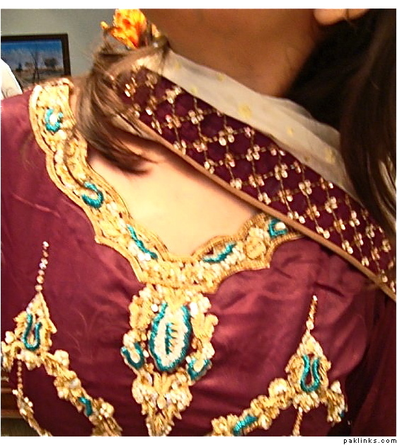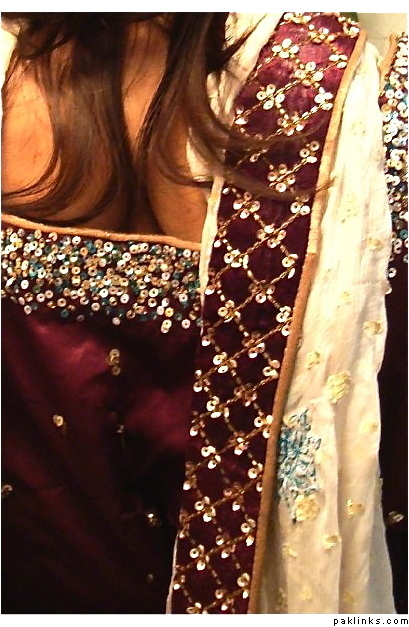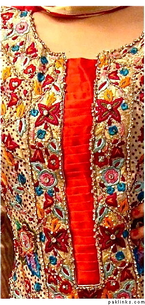 Heavy full sequins, cut dana, diamontes, dabka, katdana. Heavy thread knots and jaal work and highly neatly done. Heavy dupatta with cutwork. Threadwork and handwork jaal with the above mentioned at hem as well.