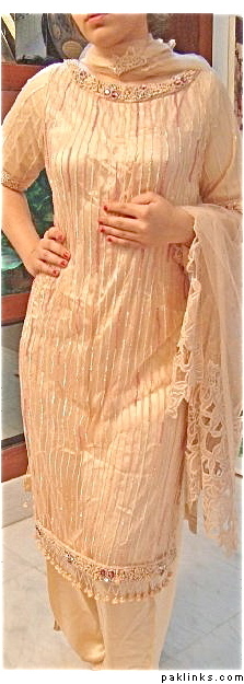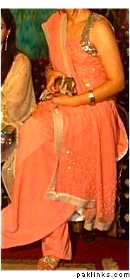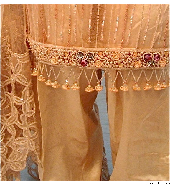 they come with white raw silk capris but they can be made into trousers or shalwar if you'd like and they can be done in pink if you want too :0)