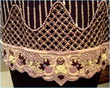 Emboss Silk with heavy colorful dabka, sequins, beads, cutwork and pearls. Dupatta is jamawar chiffon with velvet border that has cut dana and sequins.
