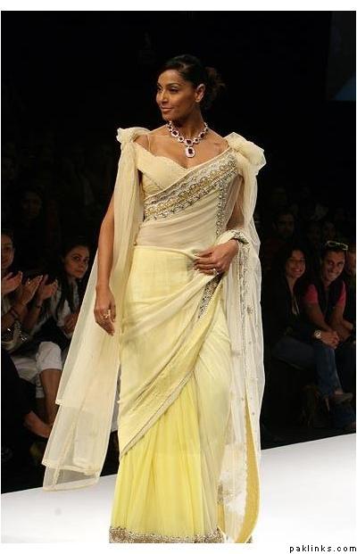 “This season Rocky S. surprised and shocked the ramp with his incredible imagination, prodigious and astonishing fashion statement through his artistic, lavish and delicately crafted collection of lehengas, graceful and exquisite saris, modish and enchanting chudidar kurtas and wispy and mellifluous gowns.”