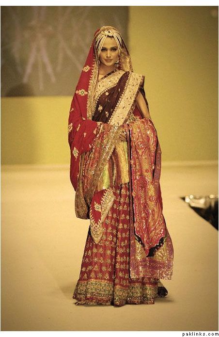 I came across this look and thought it was quite interesting. Ignore the outfit itself and look at the jewelry on her head and the dupatta setting. Wouldn’t it look lovely with a different outfit?