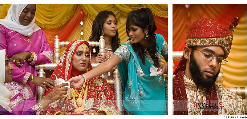 i didn't waste money on hair ish because it wasn't going to show anyway. so i just had it in a regular bun. judging by the horror stories of my non-hijabi friends, all that hair spray and styling products make your hair look like crap after you finally take all the pins out, and you end up having to wash it all out anyway so you can look presentable to your husband.
