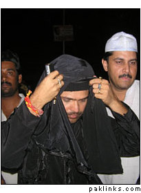 acha hai k burqha he pehnay rahkay , look much better on him den his frshie/modern look .. ![]()