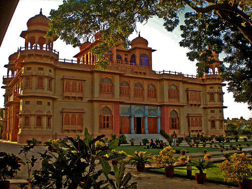 In the late 1920s Shivratan Mohatta, an ambitious businessman from Marwar, commissioned the architect Ahmed Hussein Agha to design a Rajput palace in Karachi. The palace was to be located in the prestigious locale of Clifton and serve as a summer home for the Mohatta family. Agha built a spectacular summer palace in the tradition of stone palaces in Rajasthan, using pink Jodhpur stone in combination with fine yellow local stone from Gizri.