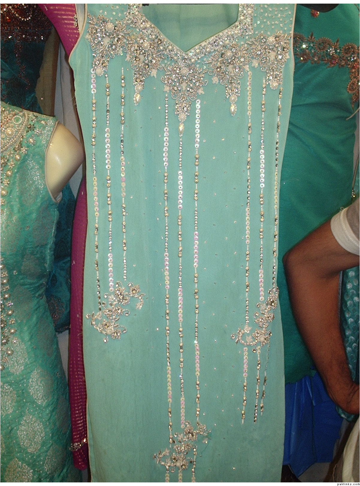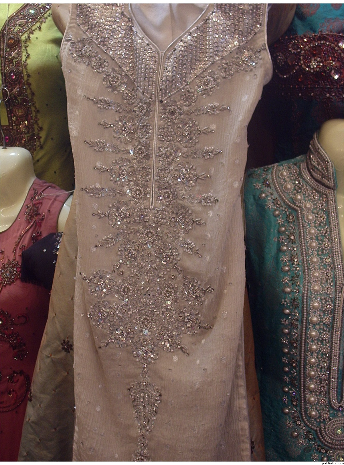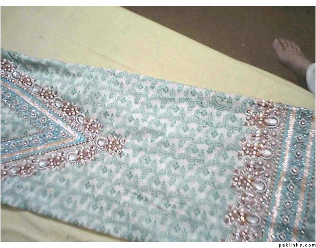 As i mentioned earlier i dont live in pakistan and i dont have this dress with me at the moment otherwise i would not have any objection in posting pics, but i know for sure that this is the same dress that i have, the kaam is an intricate mix of gota, stones, silver dabka and beads,