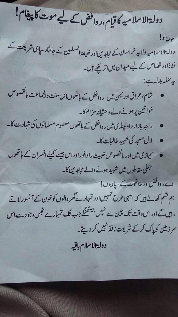 Here is a the pamphlet found at the crime scene. All sort of conspiracy theories are starting to float around, god knows what is correct and what not as lots of players involved in this. One thing i can’t understand is that these sort of organisations are far too big to single out individuals. The following makes no sense whatsoever “Khabees Rao Anwar aur is jaisay kameenay afsar”. Rao Anwar who recently became famous for throwing accusations of RAW training against MQM was otherwise a nobody so how come this barbaric organisation that brutally murdered peaceful group of people naming a police officer especially when they are supposedly taking revenge of muslims being killed in Syria, Iraq, Yemen etc??? It just doesn’t make sense the way they are trying to claim responsibility leaving pamphlets and the whole thing against well known peaceful group is extremely dodgy.