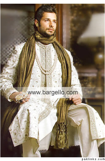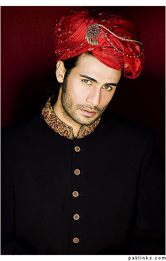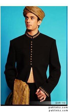 i didnt read all the posts in this thread, but personally, if your looking for unique i would DEF go with a hotpink/magenta and black lehnga!! i would rec the groom to wear: