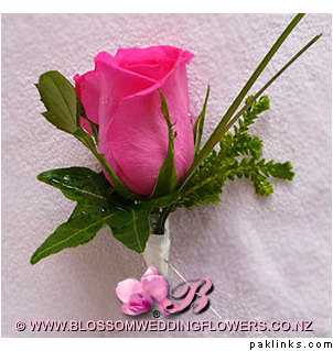 Brown and hot pink make a beautiful combo. Your fiance could wear a brown suit with a lighter brown shirt and a hot pink tie. You could wear a hot pink outfit with brown worked into it somehow (maybe through the embroidery and jewellery)