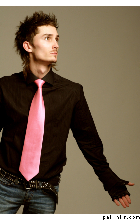 western: black suit, magenta shirt and black tie