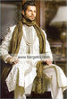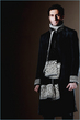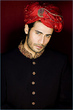 desi: black shirwani/shalwar kameez with magenta kaam and magenta kullaa/scarf