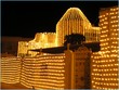 White christmas lights wrapped around golden tulle on the stair case-