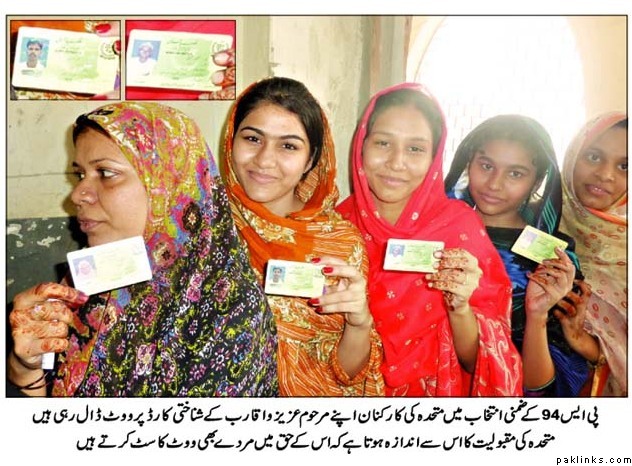 According to Ummat, MQM’s armed Terrorists occupied the polling Stations, Police and Rangers were not allowed to go in the Polling Booths. MQM’s terrorists casted Bogus Votes. Entire article can be read on http://www.ummat.com.pk/2010/10/18/news.php?p=story1.gif
