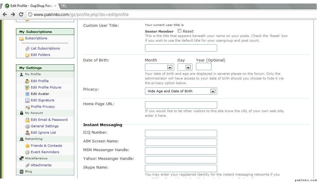 on main page - go to forum actions tab then edit profile , click on it