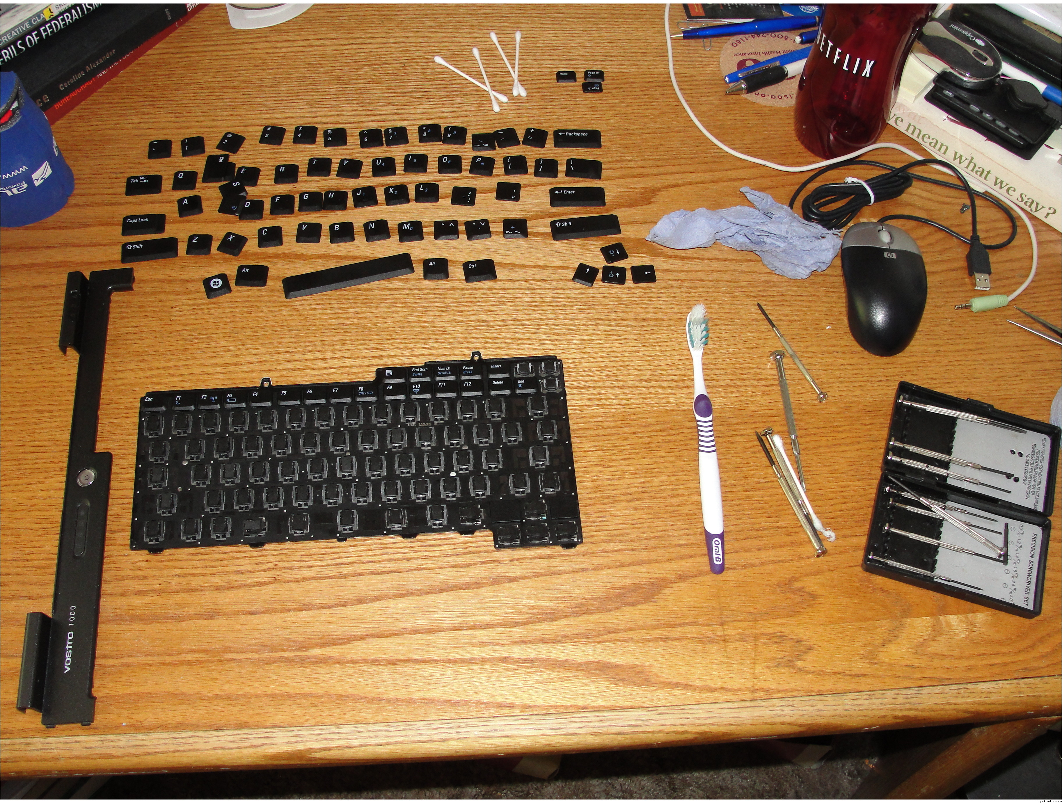 Take off the keyboard from your laptop . Now your laptop will look gunjaa . Its fine . Put it on a side . Different laptops have different ways to open up the keyboard . I would say google it up and find the correct way to do it .