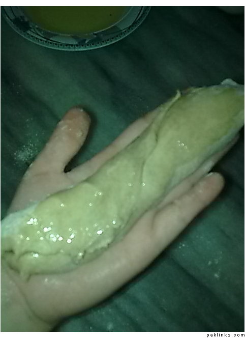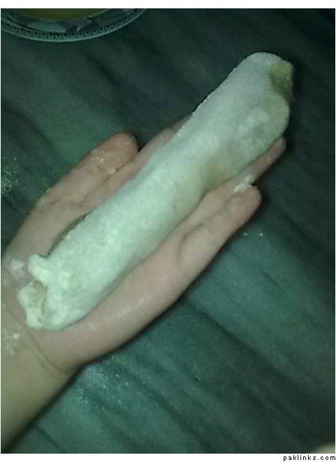 ab is per oil lagayein ayd rahei jo hisa ap ki hatheli epr hay us epr khushk aata laga how arna aata hatheli se chipak jaye ga
