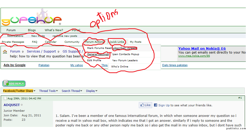 Salam. I’ve been a member of one famous international forum, in which when someone answer my question so i receive a mail in yahoo mail box, which indicates me that i got an answer. similarly if i reply to someone and the poster reply me back or any other person reply me back so i also get the mail in my yahoo inbox, but i dont have such mail facility in this forum?