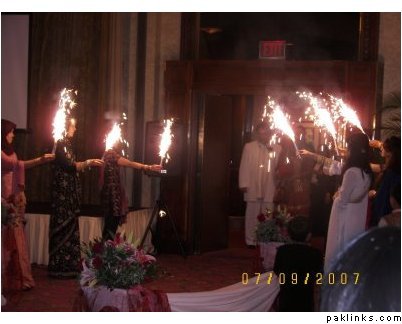 and another wedding the receivers of the baraat had those sparkler sticks....and lit them as the baraat was entering...so the guys held the sparkler sticks as baraat entered....and further in the line, the girls threw the rose petals...came out very nice in the movie