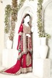 **HSY dress. Pure chiffon .Deep red, purple and sea green. A choli style shirt with beautiful embellishments on neckline ,fine work details and three quarter sleeves .Embellishment work includes: Dull golden and silver kora, dabka, nakshi, stones, sequins and rashem work. Finished with sea green banarsi piping. Fully lined with rawsilk. Hidden back zipper.