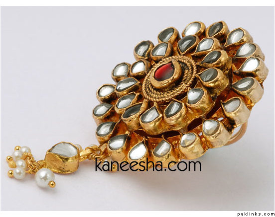 i’m soo glad someone started this thread…my bridal jewelry is all kundan…so i wanted to wear a big kundan jodha akbar ring, but my mom is against it! she is against fake jewelry but i think it would look sooo nice! I think it would look really royal…she thinks it will look tacky…here is what i want to wear.