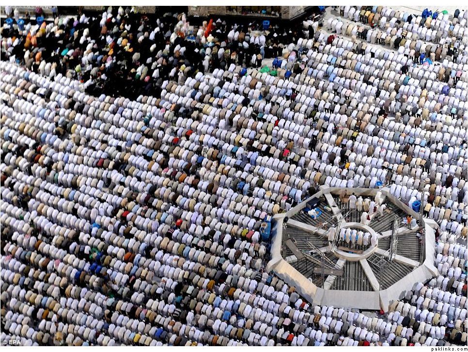 This was the scene at the Grand Mosque in Makkah, the birthplace of Islam, yesterday as Muslims around the world celebrated Ramadan.