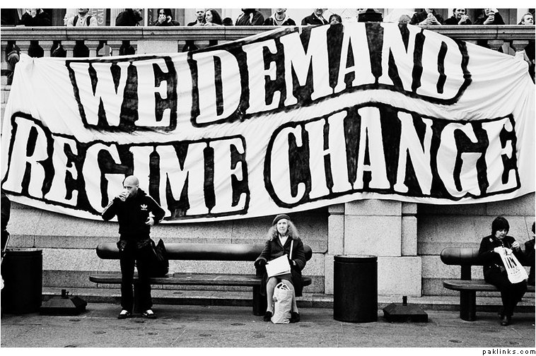 Protesters were carrying banners for regime change… this pic is taken from Guardian: