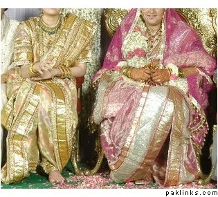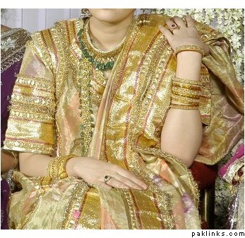 So,as i was saying,the golden dupatta is d bride's sisterz..n d pink one is d bride's..the border on d dupatta,also called the Masala is called Saancha masala and made of pure gold and silver.