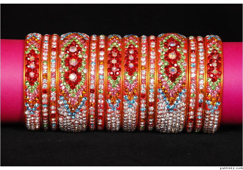 The hand ornament above is caled a bayeen and its not a traditional hyderabadi zewar, instead we in hyderabad wear co-ordinated and specially made set of lac bangles called ‘masale ka joda’- only the bride wears this, others wear ‘lac ka joda’, both are simply called ‘joda’. The lac bangles are custom made according to the colour of the khada dupatta or dress and look something like this, though I must confess these pics are of some cheap jodas