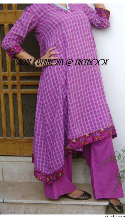 You can choose from long or short shirts, pants or capris, shalwars or chooridaars, sleeveless.short or long sleeves…front open etc and make any design according to your own taste and requirement.Its all about YOU!