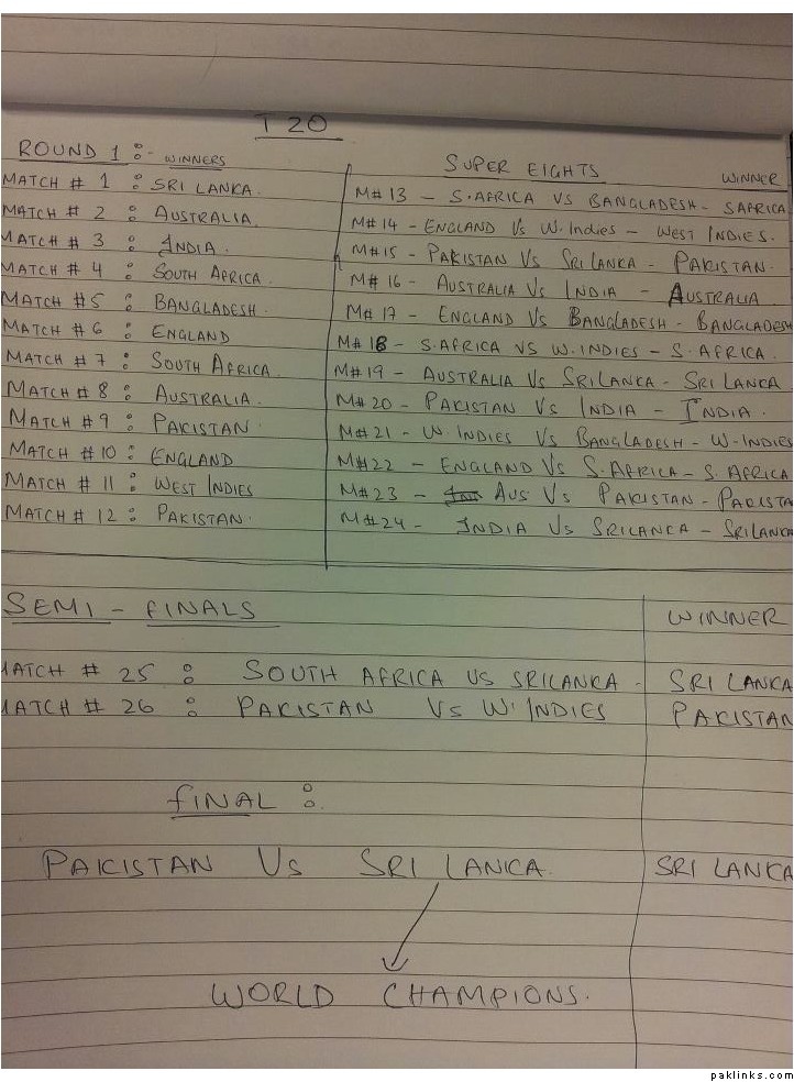 Out of SL, PAK and India...any one can win the CUP right now...I still rate SL higher due to home advantage...and their GRIT...but in T20 you can't be sure untill super 8s are over....