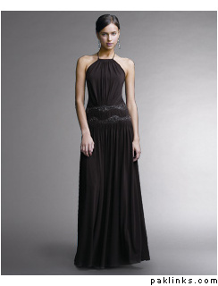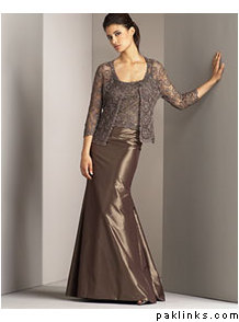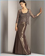 I did buy a dress today. I'm not a 100% sure I'll wear it for the wedding, but it was on sale and it is pretty, so I figured I'd wear it if nothing else turned up, or just return it if I found something I preferred. It's a long dress from Lord and Taylor, dark brown with beading and embroidery on mesh. I couldn't find it on their website, but it's by Joanna Chen's Xscape.