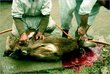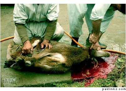the qasai strolls in, then ASA's picture happens. Then comes the whole taking the hide off part, gutting the animal. BBQ's can happen at this time too. (fresh meat BBQ...yummmmmmmmmmmm). this takes about the whole of the afternoon. people usually don't go far from their house during this time.