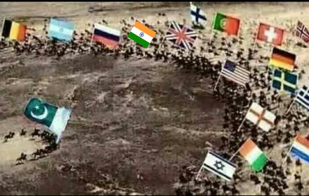 As you are at it, you missed quite a few flags in there! In the 'enemy camp', you have missed out flags of Saudi Arabia, the UAE, Bahrein, and Egypt, all vital allies of USA and India. You could also put Iran's flag in that camp as well given its recent shenanigans against Pak, also you might struggle to find the right place to plant China's flag, as you could put it in home camp given its steady support for Pakistan, or you put it in the enemy camp, for its genocidal massacre of Uhgur Muslims! I reckon you might get very confused towards the end of this flag planting exercise! then you got flags for both the UK and England? wonder why did you leave out Scottish, Welsh and Northern Irish flags, all of which are also part of the UK! and also, what has poor Switzerland done to deserve its flag on the enemy side?
