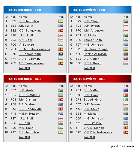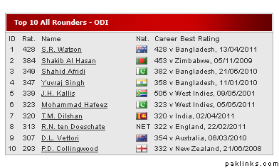 The ICC Player Rankings are a sophisticated moving average. Players are rated on a scale of 0 to 1000 points. If a player’s performance is improving on his past record, his points increase; if his performance is declining his points will go down.
