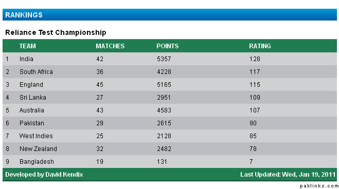 Just noticed that Pak is only 5 points behind Eng in the ODI ranking. That's a pretty good improvement I think compared to 6 months ago (if I remember correctly the gap was much bigger). So it does show that since Pak played ODIs well in the last few months it HAS reflected in the rankings. If Pak had won the WI series 4-1 or 5-0 they would have been even closer to England.