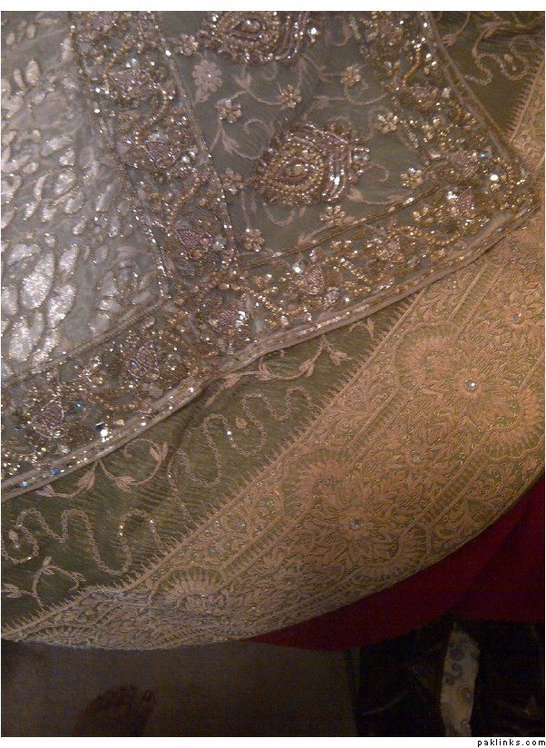 Here’s an idea that I have: I’m thinking of wearing the lehnga as a petticoat under the off-white sari that I wore to a valima recently.