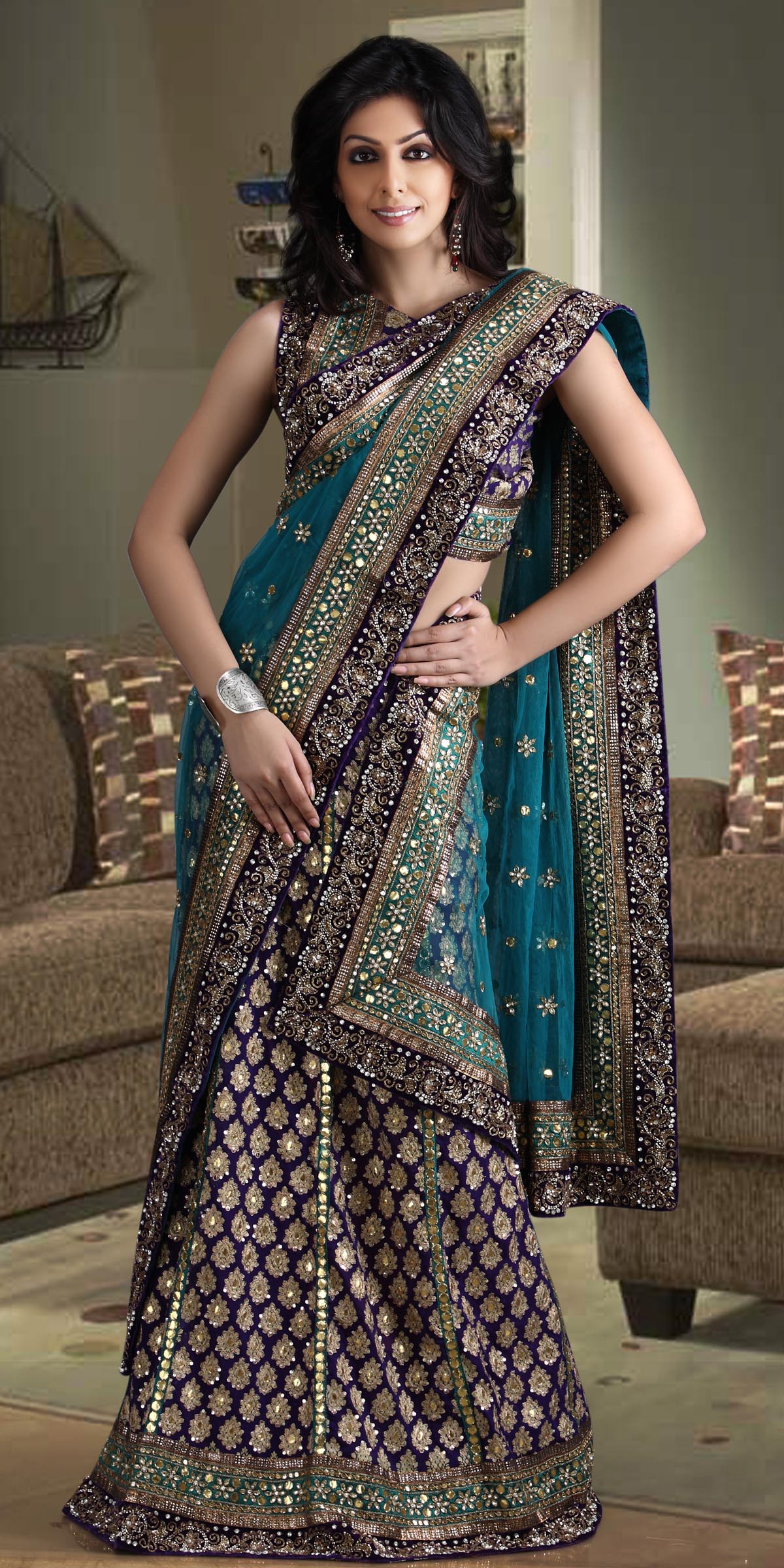 I’ll wear the sari blouse and wrap the sari in such a way that the lehnga is somewhat exposed. The pallu of the sari will still be wrapped the conventional way.