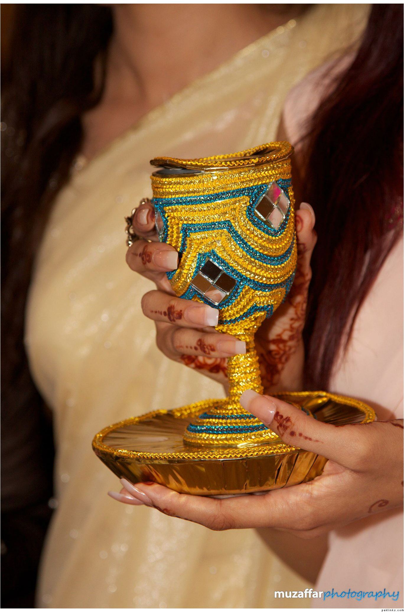 Anyone considered offering milk in a 'doodh ki botal' tied with a decorative ribbon. Just place it on a decorated tray/plate and cover with cloth. Uncover the bottle right in front of the dulah. Don't forget to make a real glass, too and serve that one up after teasing the man a little. :)