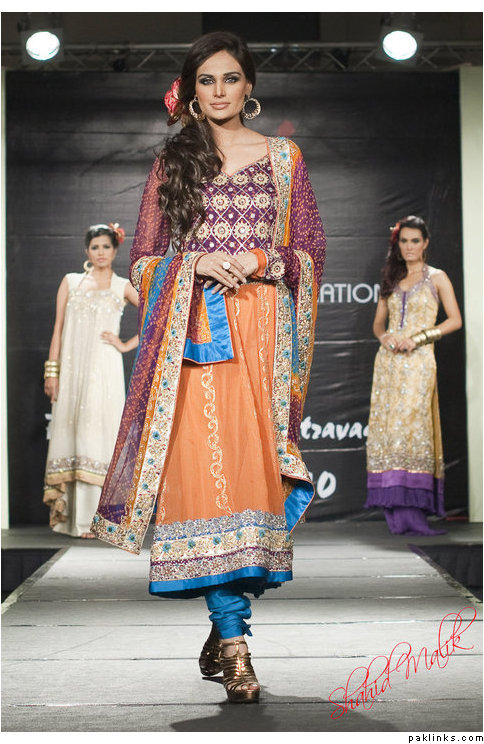 If anyone knows which year this is from, or the designer, maybe I can find out which show it’s from and find more designs. I can’t make out the writing on the stage backdrop : http://www.paklinks.com/gsmedia/files/66549/Chunri1outfit.jpg
