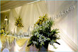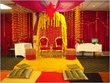 We decorated the walls with yellow and orange streamers, Christmas lights, etc. And my mother got a bunch of really pretty looking silk flowers which she arranged to add color -- bright yellow, red, etc. We also got an arch of Christmas lights from Michaels that we used as a backdrop. We put white chaddars onto the ground, keeping any actual sofas or chairs on the edges. In the central areas of the white chaddars we added some colorful tapestries and quilts in orange, red, etc. My mother also covered cusions in yellow, gold, and orange. We also got lots of small glass vases from Michaels, filled them with water, and lit floating candles. These were arranged throughout. The actual entertainment was the usual singing and dancing -- we had lots of fun.
